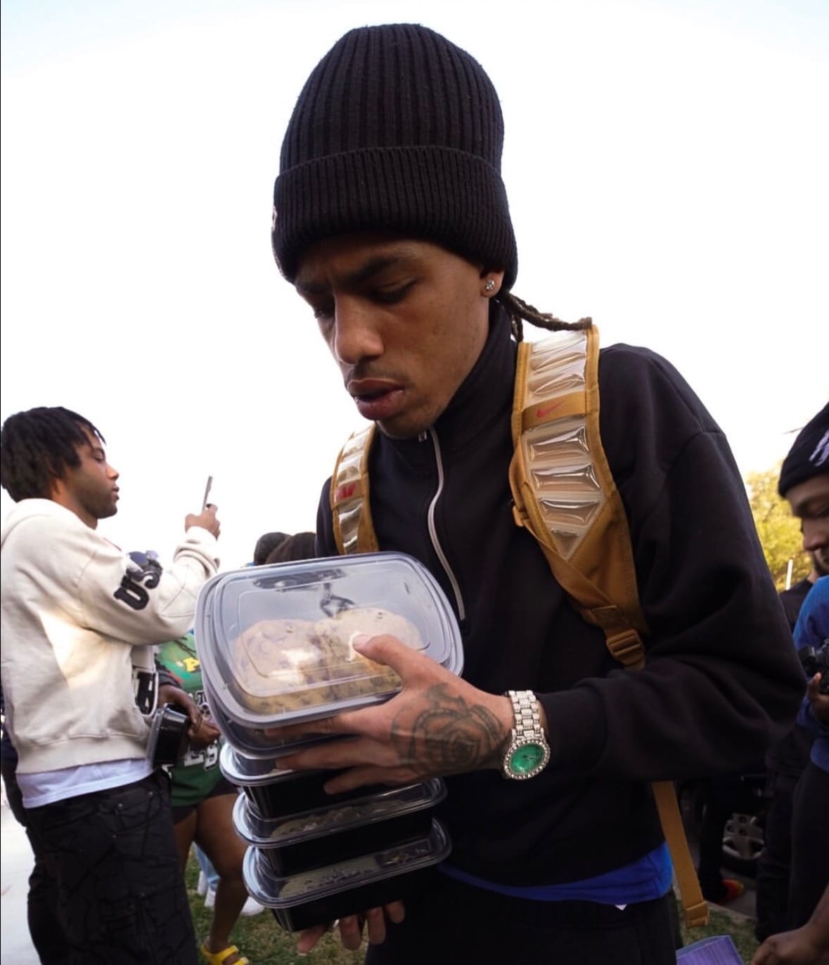 A young Black baker selling cookies — supported first by us, then bought out entirely by AJ McQueen and Bas and redistributed to the crowd.